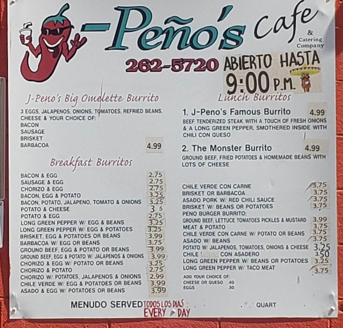 If you’re craving bold, flavorful dishes in the heart of Midland, look no further than J-Peno's #1 Menu. Nestled at 4305 W Illinois Ave, this local gem serves up an exciting mix of delicious Tex-Mex and unique creations. From sizzling fajitas to mouthwatering tacos, every bite is packed with the freshest ingredients and the perfect balance of spices. Whether you’re stopping by for a quick lunch or settling in for a hearty dinner, J-Peno’s offers something for everyone. Don’t miss out on their signature dishes, each designed to bring a burst of flavor to your plate and leave you coming back for more.